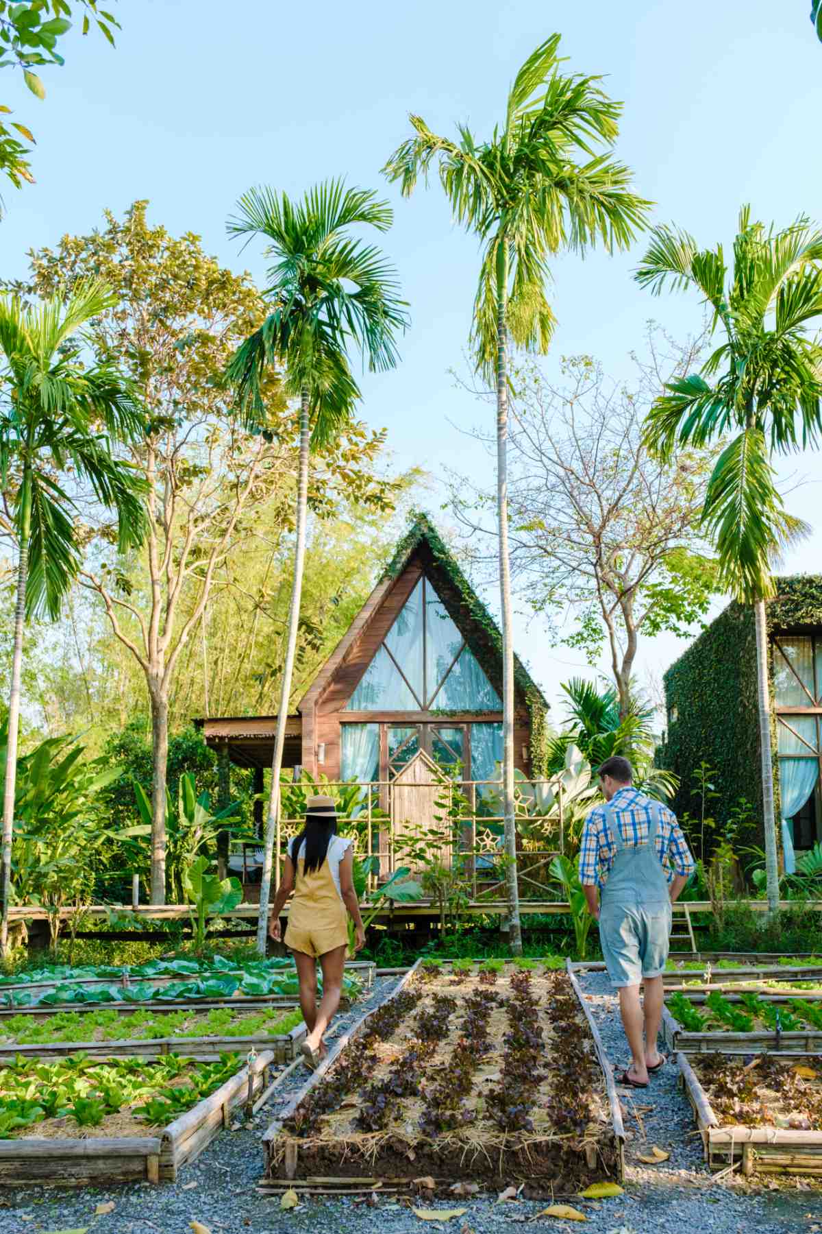 Relax in a botanical haven surrounded by blooming gardens, soothing silence, and natural materials for wellness.